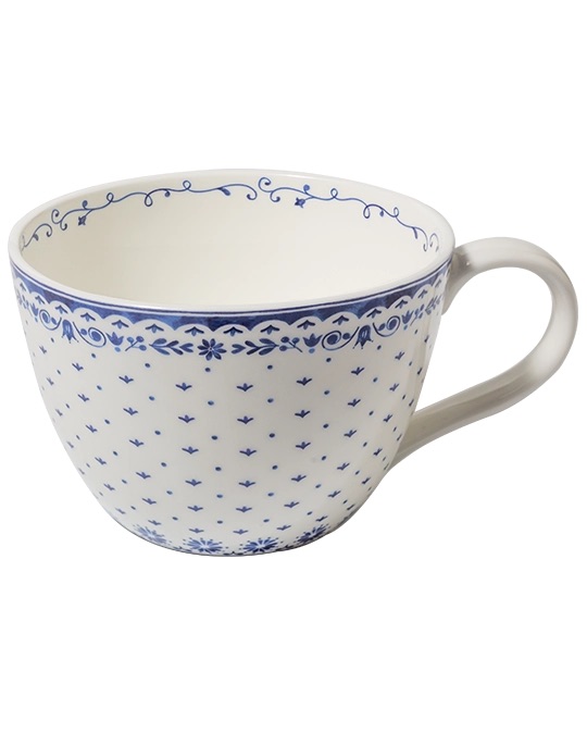 Mit seinem Fassungsvermögen von 400 ml eignet sich der Becher gut für den täglichen Gebrauch und liegt angenehm in der Hand. Gefertigt aus Fine Bone China, wirkt er leicht und hochwertig und passt gut zu einer stilvollen Tischkultur.