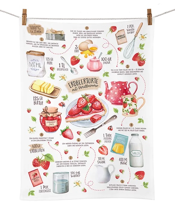 Besonders für Backfreunde, Erdbeerliebhaber oder als kleine Geschenkidee ist dieses Geschirrtuch eine schöne Wahl.