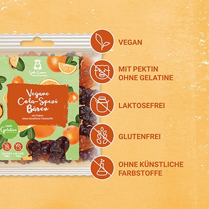 Die Fruchtgummis werden mit Pektin als Geliermittel hergestellt und sind angenehm weich in der Konsistenz. Durch den typischen Cola-Geschmack und die fruchtige Orangennote entsteht eine abwechslungsreiche Mischung für alle, die klassische Fruchtgummis mit besonderem Aroma mögen.
